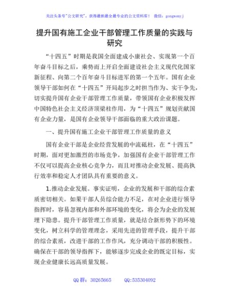 提升国有施工企业干部管理工作质量的实践与研究(调研报告)