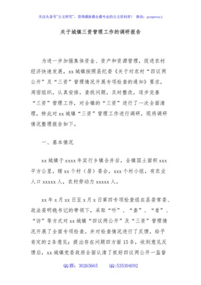 / 关于城镇三资管理工作的调研报告