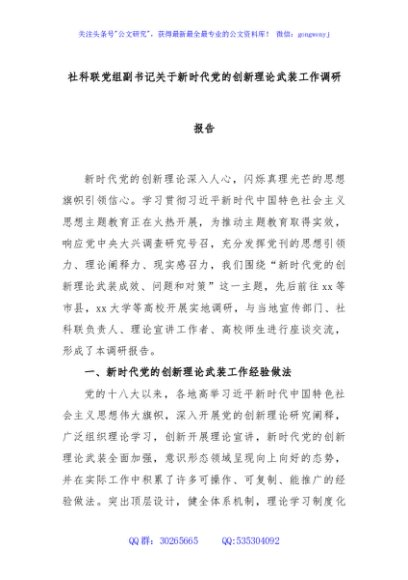 / 社科联党组副书记关于新时代党的创新理论武装工作调研报告