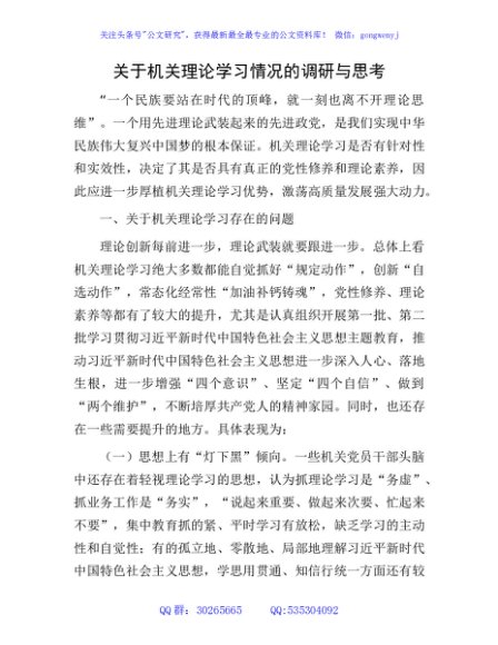/ 机关理论学习情况的调研与思考(调研报告)