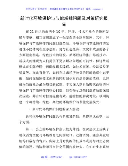 / 新时代环境保护与节能减排问题及对策研究报告(调研报告)