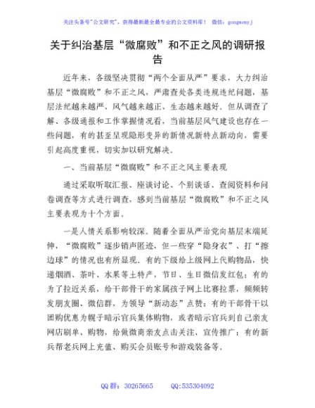 / 纠治基层“微腐败”和不正之风的调研报告