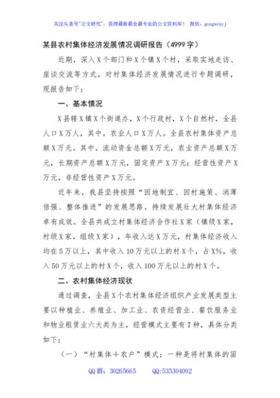 / 某县农村集体经济发展情况调研报告(4999字)