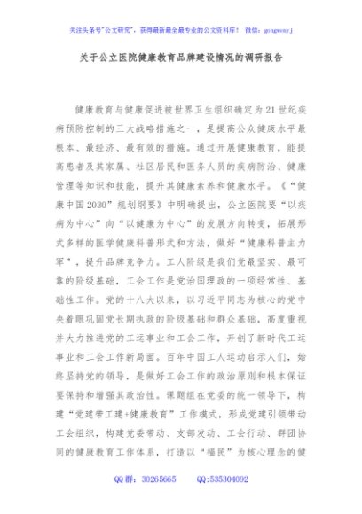 / 关于公立医院健康教育品牌建设情况的调研报告