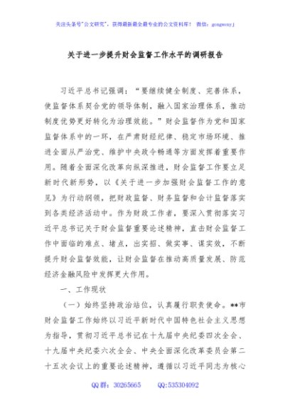 / 关于进一步提升财会监督工作水平的调研报告
