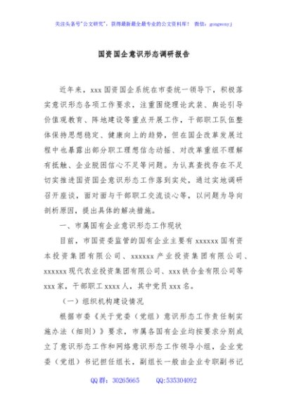 / 国资国企意识形态调研报告