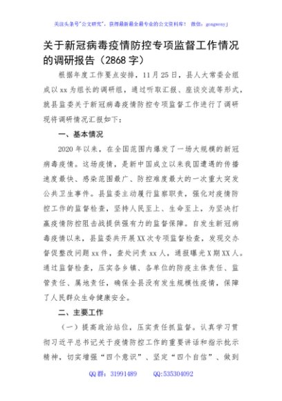 / 关于新冠病毒疫情防控专项监督工作情况的调研报告