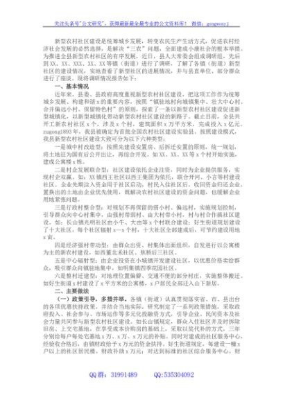 / 县新型农村社区建设情况调研报告