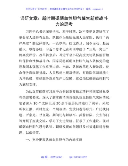 / 调研报告:新时期砥砺血性胆气催生新质战斗力的思考