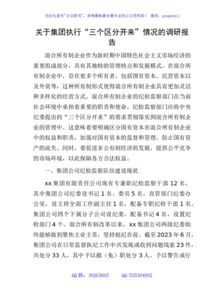 / 公司执行“三个区分开来”情况的调研报告