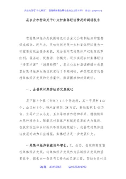 / 县农业农村局关于壮大村集体经济情况的调研报告