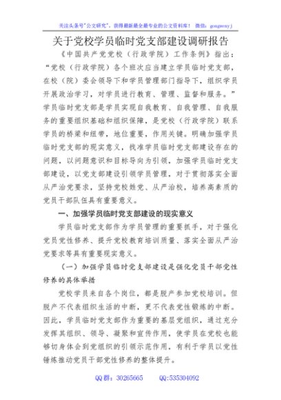 / 党校学员临时党支部建设调研报告