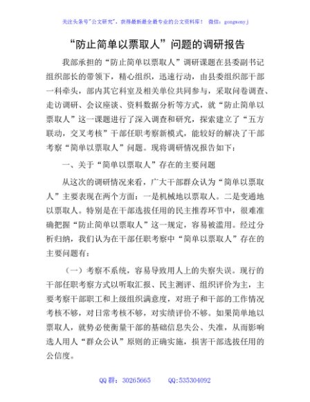 / “防止简单以票取人”问题的调研报告