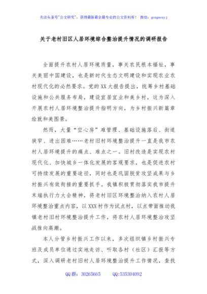 / 关于老村旧区人居环境综合整治提升情况的调研报告