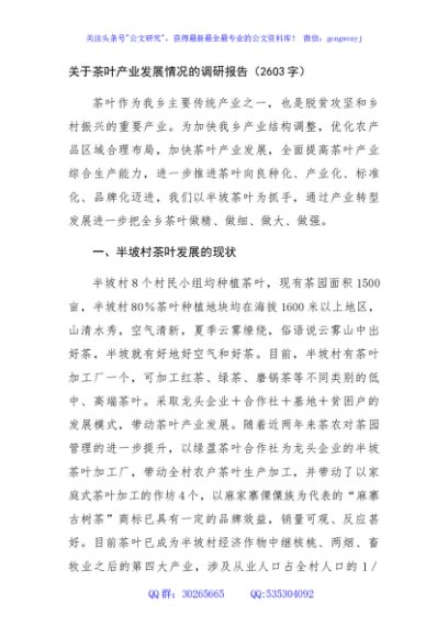 / 关于茶叶产业发展情况的调研报告(2603字)