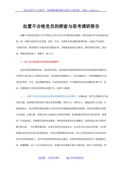 / 调研报告:处置不合格党员的探索与思考