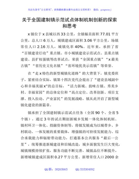 全国建制镇示范试点体制机制创新的探索和思考(调研报告)