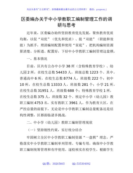 / 区委编办中小学教职工编制管理工作的调研与思考(调研报告)