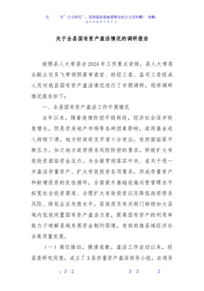 / 关于全县国有资产盘活情况的调研报告
