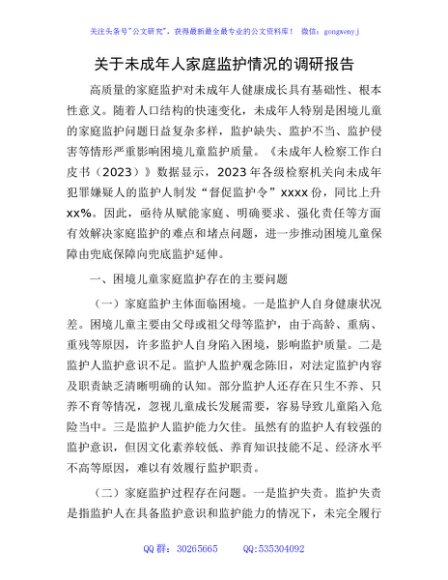 / 未成年人家庭监护情况的调研报告
