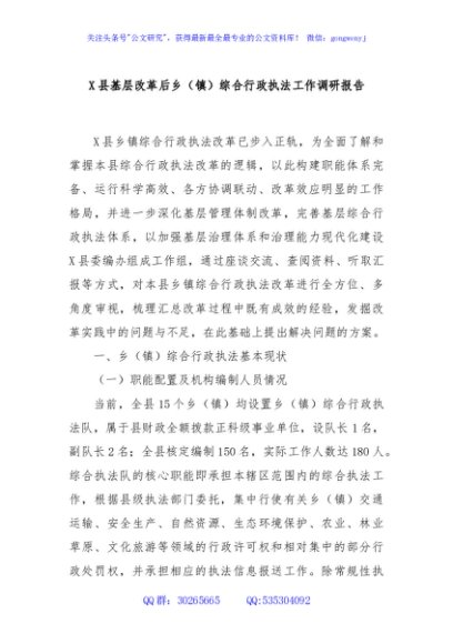 / X县基层改革后乡(镇)综合行政执法工作调研报告