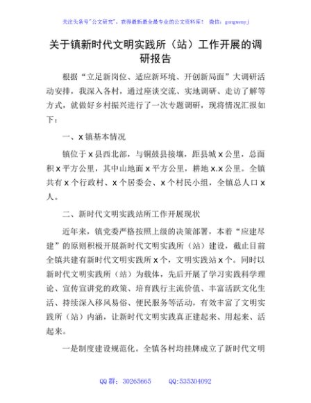 / 乡镇新时代文明实践所(站)工作开展的调研报告