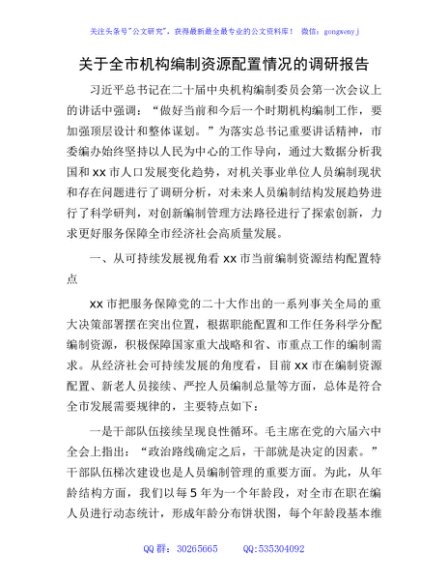 / 全市机构编制资源配置情况的调研报告