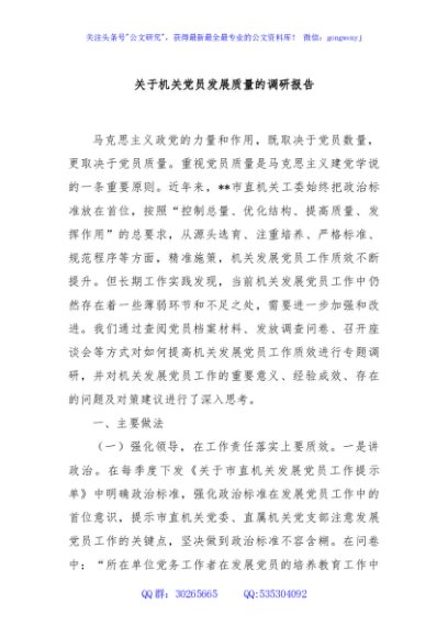 / 关于机关党员发展质量的调研报告