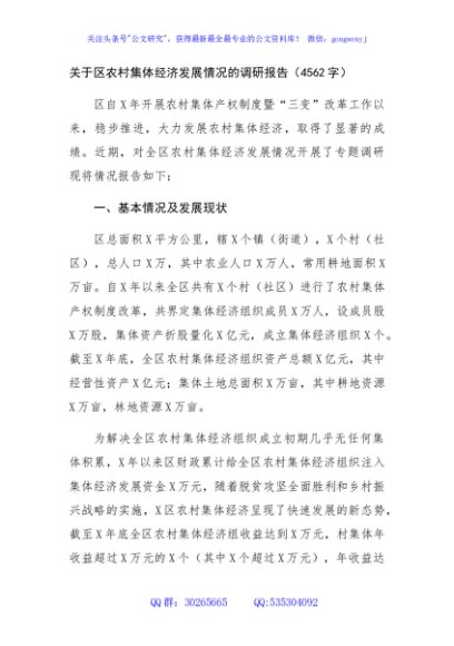 / 关于区农村集体经济发展情况的调研报告(4562字)