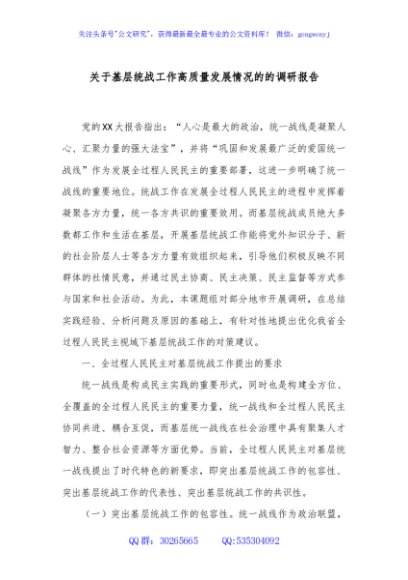 / 关于基层统战工作高质量发展情况的的调研报告