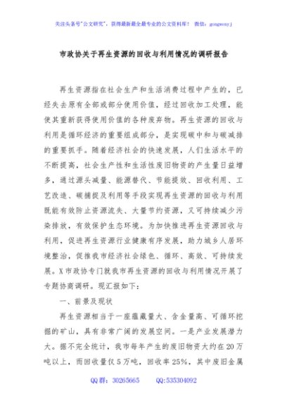 / 市政协关于再生资源的回收与利用情况的调研报告