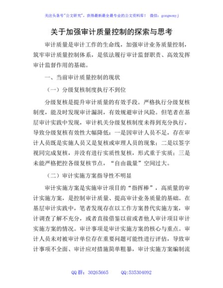 / 加强审计质量控制的探索与思考(调研报告)