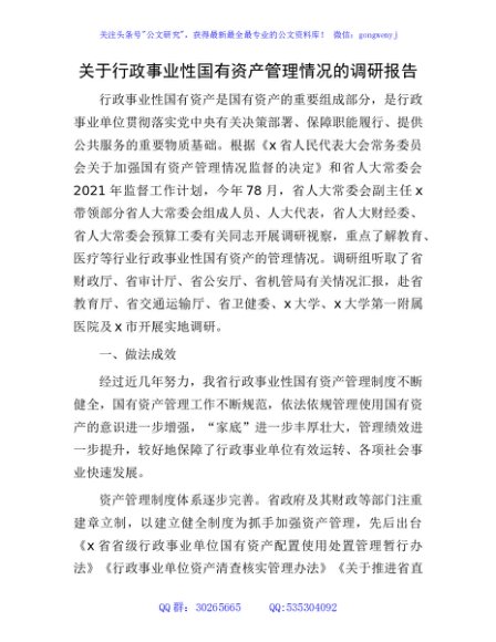 / 行政事业性国有资产管理情况的调研报告