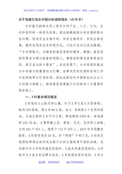 / 关于党建引领乡村振兴的调研报告(4278字)