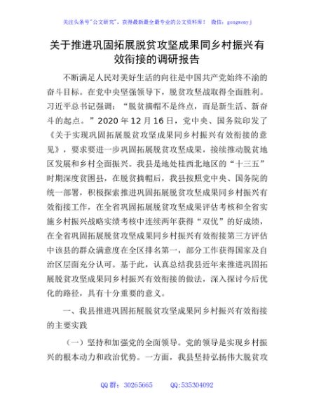 / 推进巩固拓展脱贫攻坚成果同乡村振兴有效衔接的调研报告