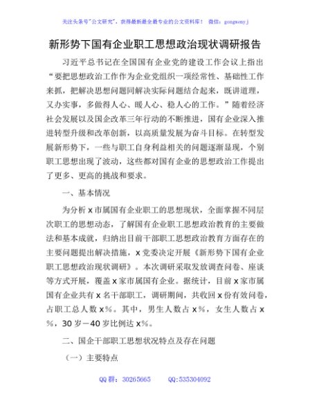 / 新形势下国有企业职工思想政治现状调研报告(公司)