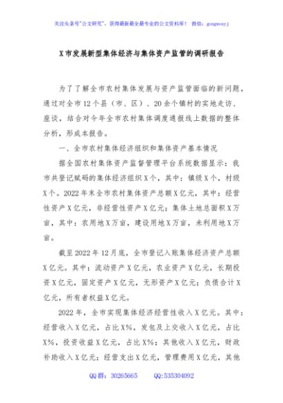 / X市发展新型集体经济与集体资产监管的调研报告