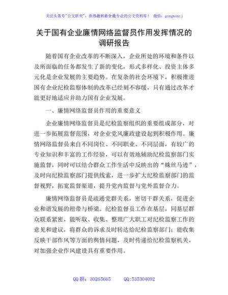 / 国企公司廉情网络监督员作用发挥情况的调研报告