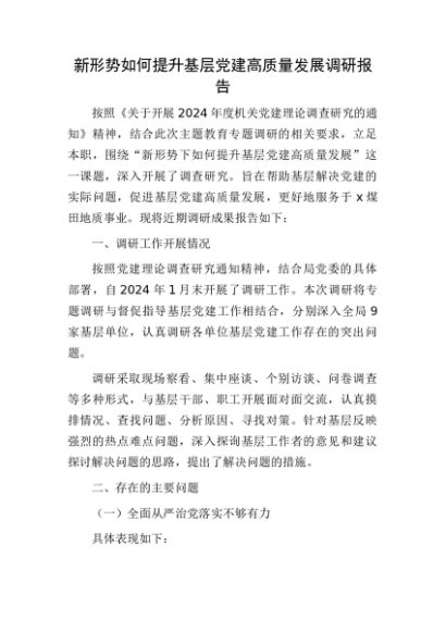 / 新形势如何提升基层党建高质量发展调研报告