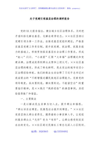 关于党建引领基层治理的调研报告
