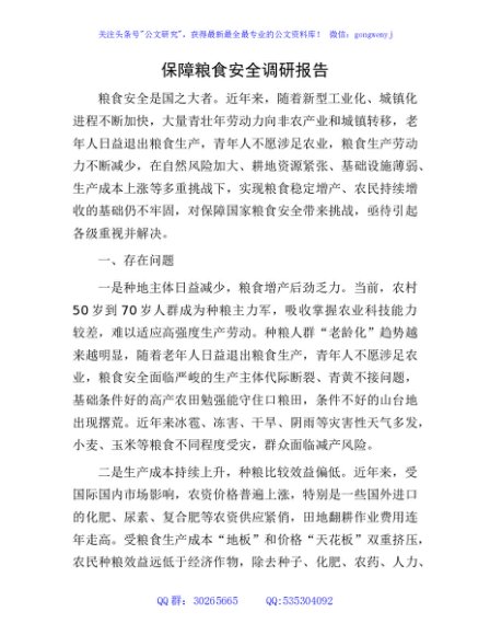 / 保障粮食安全调研报告