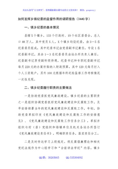 / 如何发挥乡镇纪委的监督作用的调研报告