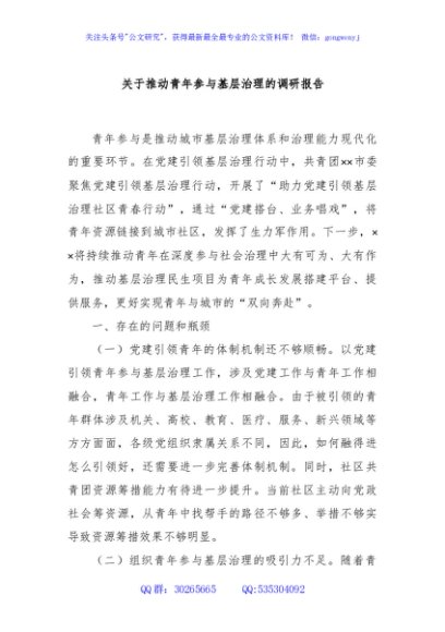 / 关于推动青年参与基层治理的调研报告