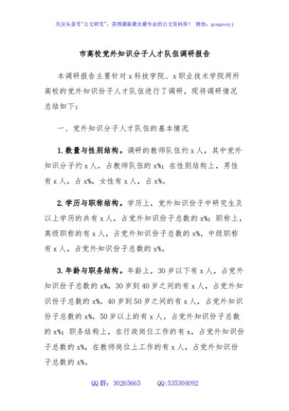 / 市高校党外知识分子人才队伍调研报告