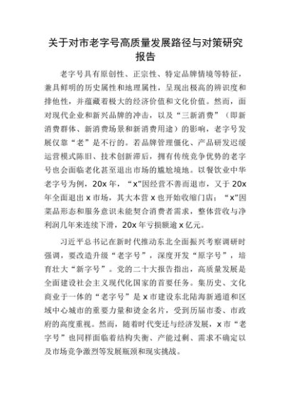 / 对市老字号高质量发展路径与对策研究报告(调研报告)