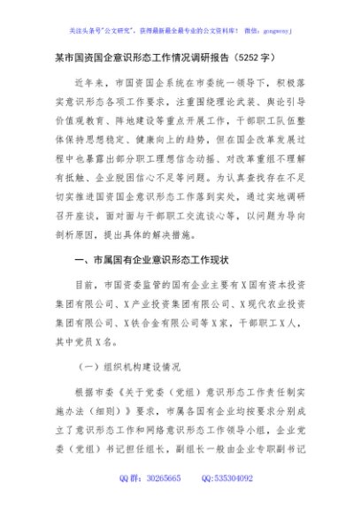/ 国资国企意识形态工作情况调研报告(5252字)