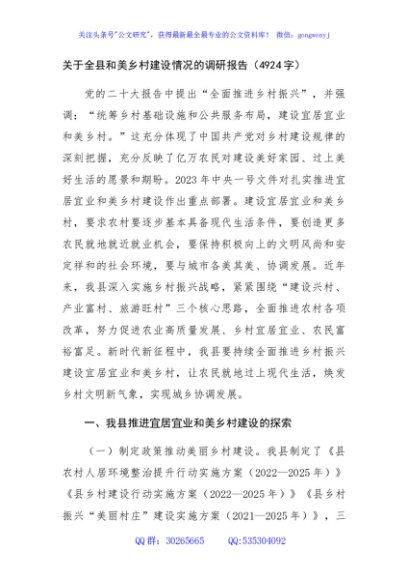 / 关于全县和美乡村建设情况的调研报告
