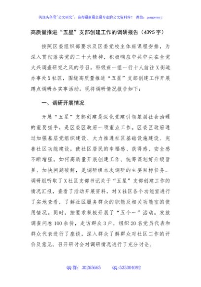 / 高质量推进“五星”支部创建工作的调研报告(4395字)