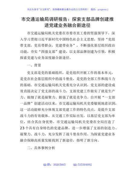 市交通运输局调研报告:探索支部品牌创建推进党建业务融合新途径