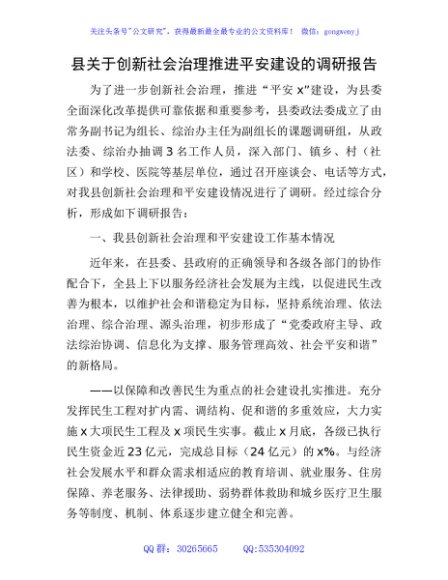 / 县关于创新社会治理推进平安建设的调研报告